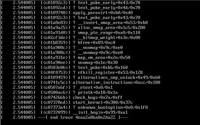 「paravirt_ops」(paravirtパッチ)が、VirtualPCやVMWare環境ではプロセッサエラーを引き起こすため、停止したり起動エラーが起こるようです。